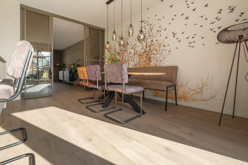 De Attico 830 is een pvc-vloer met extra brede planken van 236 × 1520 mm in een warme houtkleur. De vloer oogt rustig en ruimtelijk en past daardoor in veel woonstijlen. Je kunt hem in verschillende patronen leggen en hij is geschikt voor woningen én projecten. Met 2,5 mm dikte is hij goed te gebruiken bij renovatie en in combinatie met vloerverwarming. Ook traptoepassing is mogelijk. Slijtvast, onderhoudsvriendelijk en geluiddempend: een duurzame basis voor dagelijks gebruik.