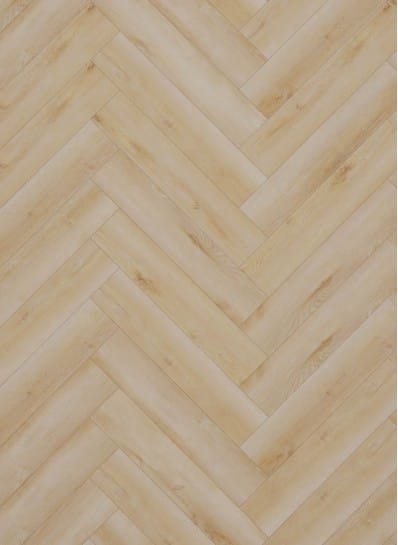 Deze visgraatvariant verenigt klassieke elegantie met de praktische voordelen van PVC. De lichte houtkleur oogt fris en tijdloos en vergroot de ruimtelijkheid, terwijl het visgraatpatroon een luxe signatuur toevoegt. Met vijftien unieke planken—bij spiegelen goed voor dertig varianten—ontstaat een natuurgetrouw en gevarieerd legbeeld.