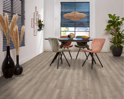 De Elite Donker Bruin Eiken straalt klasse en warmte uit. Deze stijlvolle laminaatvloer uit de Elite collectie valt op door zijn diepe bruintint, subtiele houttekening en extra matte toplaag. De all-over structuur zorgt voor een levensecht uiterlijk, terwijl de vierzijdige V-groef het plankformaat elegant benadrukt. Met een lengte van 128,6 cm, een breedte van 19,4 cm en een dikte van 8 mm is deze vloer niet alleen visueel aantrekkelijk, maar ook geschikt voor intensief woongebruik. Een ideale keuze voor wie houdt van een rijke, natuurlijke vloer die sfeer en comfort uitstraalt.