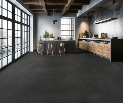 De Gelasta Flash 2201 Basalt Anthracite Dryback pvc vloer is een stijlvolle tegelvloer met een moderne betonlook. De diepe antracietkleur en subtiele betonstructuur geven de vloer een krachtige en luxe uitstraling. Tegelijkertijd zorgen de warme kleurnuances ervoor dat de vloer een rustige basis vormt in het interieur. Hierdoor past deze pvc vloer perfect in moderne, industriële en minimalistische woonstijlen.
