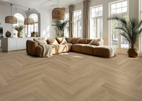Met de Gelasta Highland Visgraat 2603 Naturel haal je een pvc visgraatvloer in huis die luxe uitstraling, comfort en duurzaamheid perfect combineert.