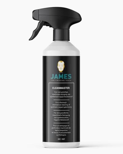 James Cleanmaster is een professionele reiniger voor synthetische tapijt- en meubelstoffen, speciaal ontwikkeld voor gebruik met een sproei-extractiemachine.