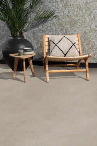 De Nova 6300 Arctic Sand brengt de stoere uitstraling van beton naar een comfortabele PVC-tegel. Dankzij de stone embossed structuur en de extra matte toplaag oogt de tegel als echt beton, maar voelt hij warmer en zachter aan en is hij veel makkelijker schoon te houden. De rustige zandgrijze Arctic Sand-kleur vormt een veelzijdige basis die past bij industriële, minimalistische en modern-natuurlijke interieurs. De tegels hebben een formaat van 60,96 × 60,96 cm en zijn rondom voorzien van een v-groef, waardoor er een strak en ruimtelijk vloerbeeld ontstaat. Met een totale dikte van 2,5 mm, een 0,55 mm slijtlaag en slijtageklasse 42 is deze vloer geschikt voor intensief woongebruik én commerciële toepassingen.