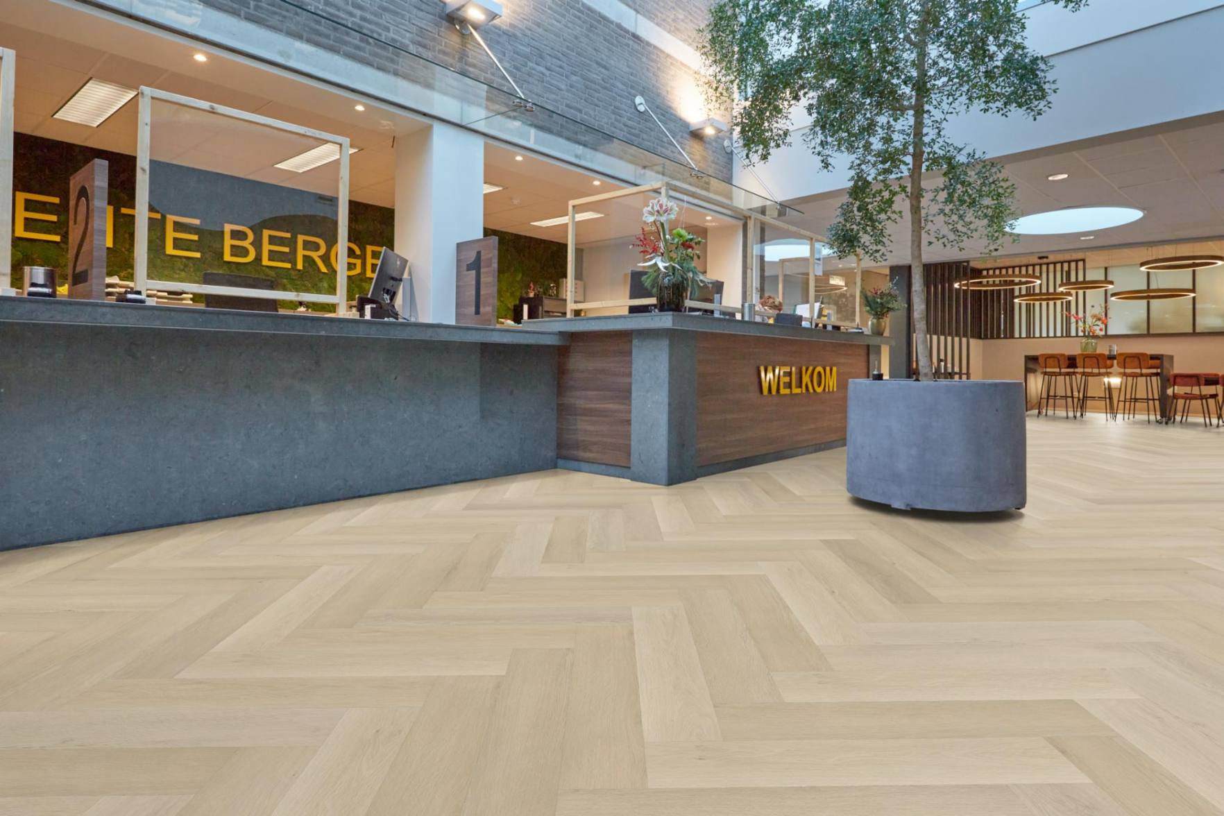De Spigato Marento Visgraat Click SRC Beige is een prachtige vloer die het klassieke visgraatpatroon combineert met milieuvriendelijk design. Gemaakt van meer dan 50% gerecycled pvc, biedt deze vloer niet alleen duurzaamheid maar ook stijl en kwaliteit. De brede planken stralen luxe uit, terwijl de natuurgetrouwe structuur met een matte toplaag zorgt voor een warme en natuurlijke uitstraling. De vloer is beschikbaar in diverse tinten en de clickvariant is uitgerust met een 10dB geluiddempende onderlaag (SRC), wat zorgt voor extra comfort en geluidsisolatie. Dit maakt de vloer ideaal voor gebruik in appartementen of ruimtes waar geluidsreductie belangrijk is. Maak je woning compleet met de Spigato Marento Visgraat Click SRC Beige voor een verantwoorde keuze met luxe uitstraling.