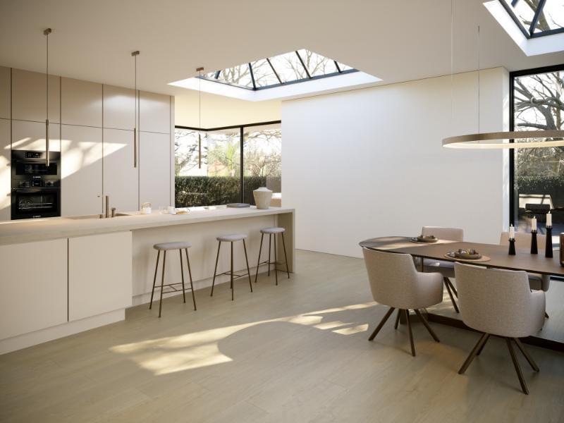 De ultra matte finish geeft de vloer een natuurlijke, warme uitstraling die rust en karakter toevoegt aan elke ruimte. Dankzij de geschiktheid voor vloerverwarming en traprenovatie is deze vloer bovendien praktisch en comfortabel in gebruik.