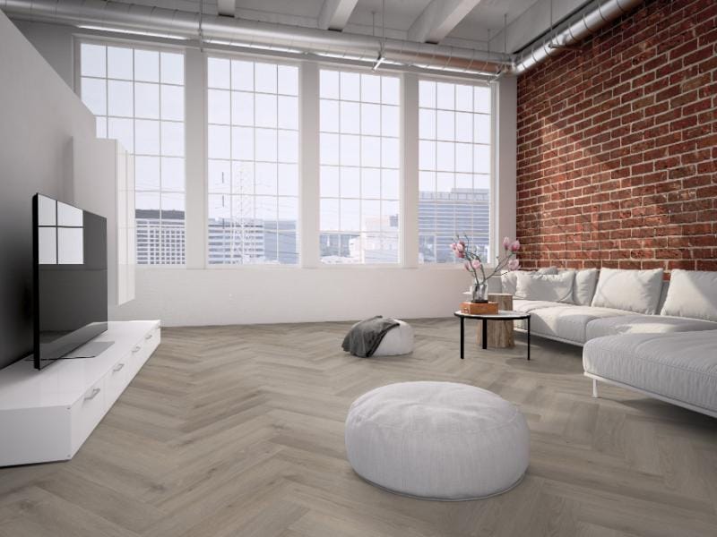 Deze vloer combineert een klassiek visgraatpatroon met een rustiek bruin design en een authentieke houtstructuur. Het compacte formaat van 119 × 595 mm benadrukt het speelse karakter en zorgt ervoor dat zelfs kleinere ruimtes een stijlvolle uitstraling krijgen.
