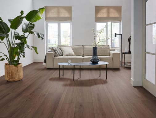 De Sereno warmbruin eiken vloer brengt warmte en karakter in je interieur. De extra brede planken van 8 mm dik, 138 cm lang en 24,4 cm breed zorgen voor een ruimtelijk en rustig effect in elke kamer. De warme bruintint geeft een gezellige sfeer, terwijl de natuurgetrouwe allover structuur en matte toplaag zorgen voor een realistische houtlook die perfect past bij zowel moderne als klassieke woonstijlen. Dankzij de waterbestendige eigenschappen en geschiktheid voor vloerverwarming en -koeling biedt deze vloer niet alleen stijl, maar ook optimaal comfort en gebruiksgemak — het hele jaar door.