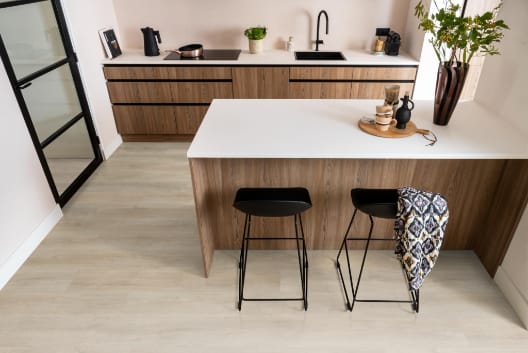 De Sunny Oak beige eiken vloer is een stijlvolle keuze voor wie houdt van een lichte, frisse en natuurlijke uitstraling in huis. De subtiele beige tint in combinatie met de allover houtstructuur en matte afwerking geeft deze vloer een serene en tijdloze uitstraling. Met een plankdikte van 8 mm, lengte van 138 cm en breedte van 19,3 cm is deze vloer geschikt voor elk type ruimte, groot of klein. Hij is compatibel met zowel vloerverwarming als -koeling, waardoor je elk seizoen geniet van optimaal wooncomfort. De vloer is eenvoudig in onderhoud, slijtvast en een perfecte basis voor zowel moderne als landelijke interieurs.