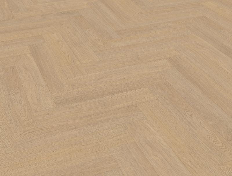 De Terreno Visgraat XL 61 is een verlijmbare PVC-vloer met een lichtbruine houttint en een XL-visgraatpatroon van 153 × 765 mm. Het grotere formaat maakt het patroon wat rustiger en geeft een moderne draai aan de klassieke visgraat. De vloer is ontworpen voor intensief gebruik, geschikt voor vloerverwarming en traprenovatie en daardoor inzetbaar in woningen en projecten. Door de dryback-installatie krijg je een strak, stevig eindresultaat met een tijdloze, lichte uitstraling.