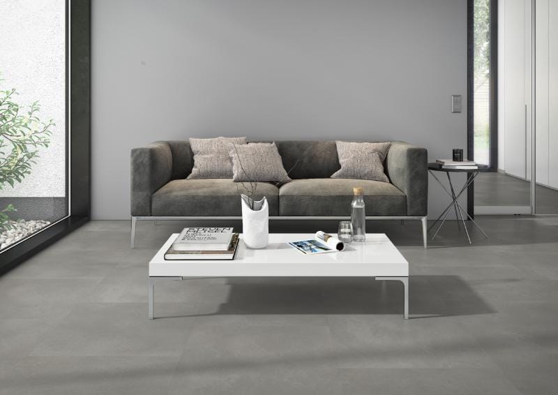 Touchstone 15 uit de Belakos Touchstone-serie brengt de moderne betonlook naar binnen, maar dan warm, stil en comfortabel. De vierkante pvc-tegels van 610 × 610 mm in een elegante grijstint geven je interieur een industriële, strakke basis die perfect combineert met hout, staal en natuurlijke materialen. Anders dan echt beton voelt deze vloer niet koud aan en is hij een stuk stiller en onderhoudsvriendelijker.