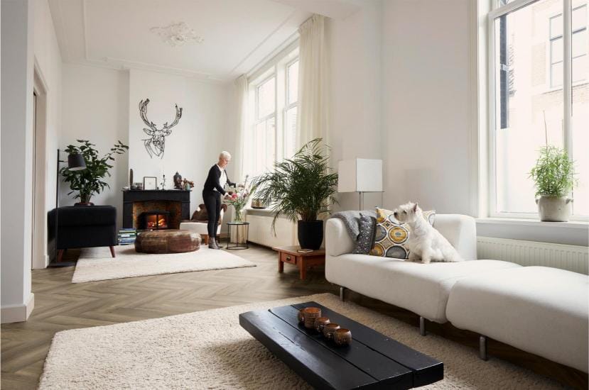 Dankzij de slijtvaste toplaag en de voelbare houtstructuur blijft de vloer jarenlang mooi. Bovendien is de Visgraat 6810 geluiddempend, onderhoudsvriendelijk en vochtbestendig, waardoor hij zowel in woonkamers als keukens uitstekend tot zijn recht komt.